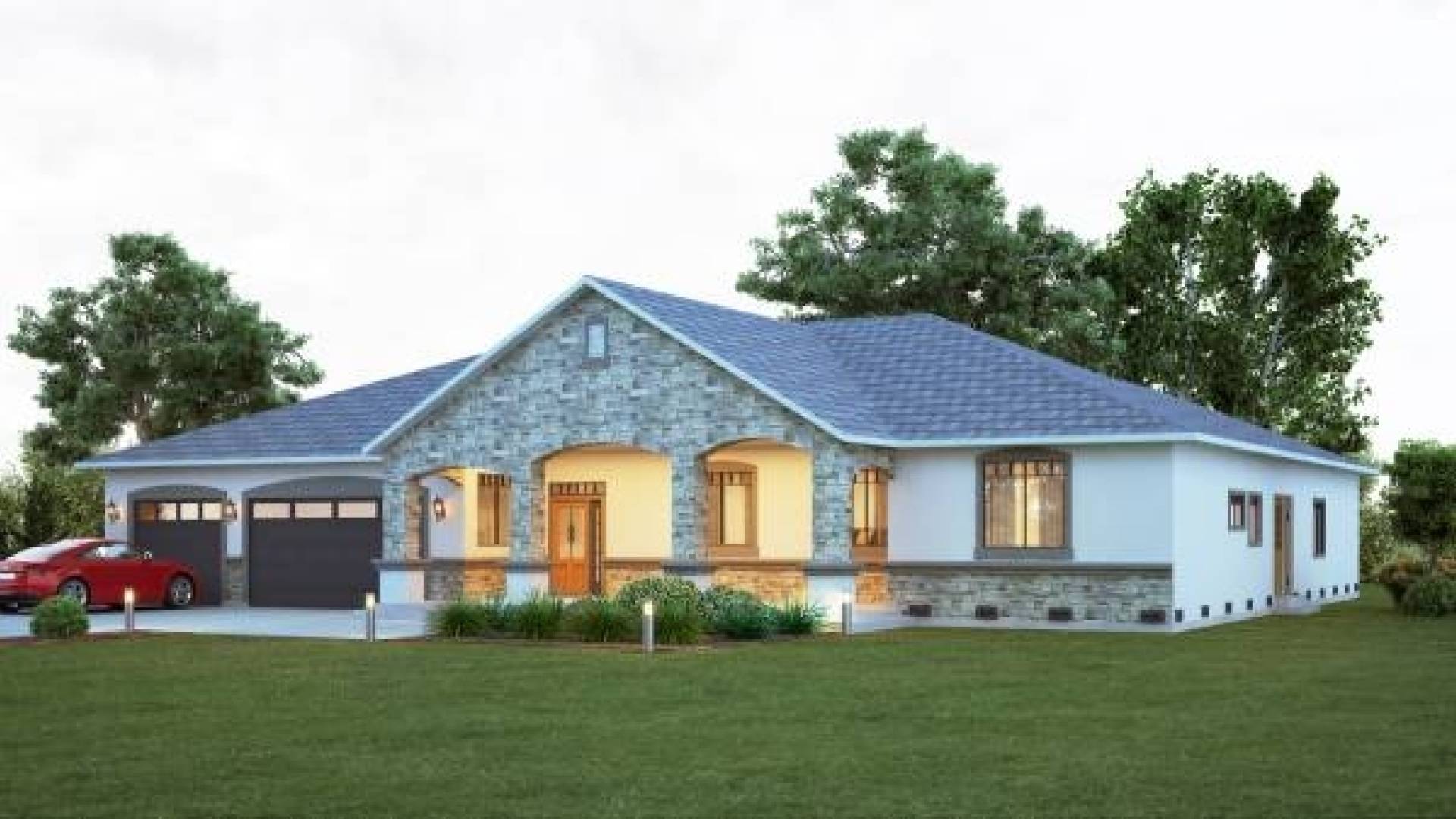 A large front porch sets a welcoming tone to this spacious plan. Inside, the Napa panelized kit home offers almost unlimited possibilities for customizing the individual rooms. Any of the bedrooms can be modified to serve as a den, home office, or game room, while the mini guest suite includes private and house access, a private bath, and a kitchenette. The large master suite enjoys direct access to the back porch and a sizable walk-in closet. Centrally located, the double-entry kitchen and nook has a large island, pantry, and computer desk. The Napa’s unique multi-use laundry room is accessible from the main living areas, master suite closet, guest bath, and the backyard. Adjacent to the kitchen, the multi-use family room offers an extensive view of the backyard as well as direct entry into the three-car garage.