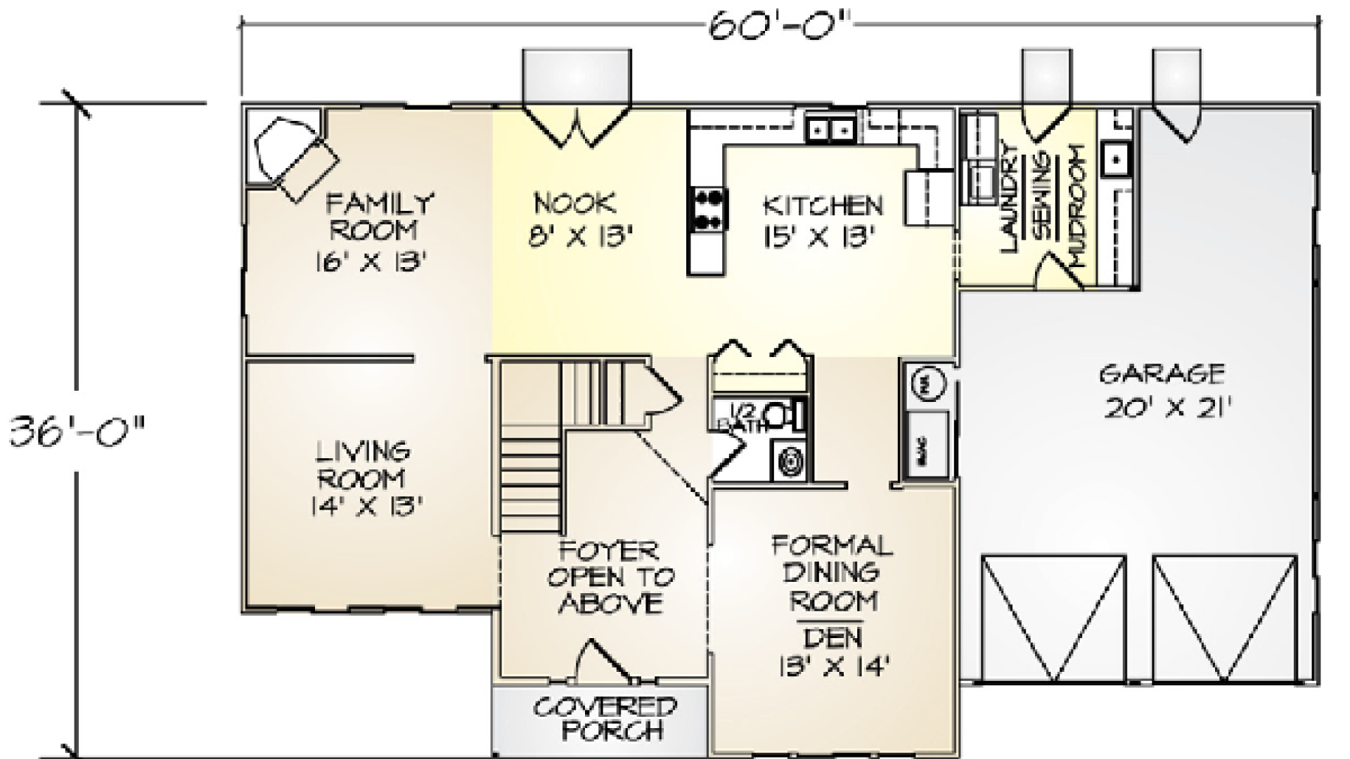 Certain homes have a unique signature all their own and are easily recognized by everyone. With a grand entrance offering immediate access to the formal dining and living rooms, the Scottsdale panelized kit home is one of those homes. The large family room with an informal eating area next to the kitchen is perfect for everyday family use. The master suite enjoys a large walk-in closet off of the compartmentalized master bath area. The oversized two-car garage even has an area for a golf cart, shop, home office, or more storage.