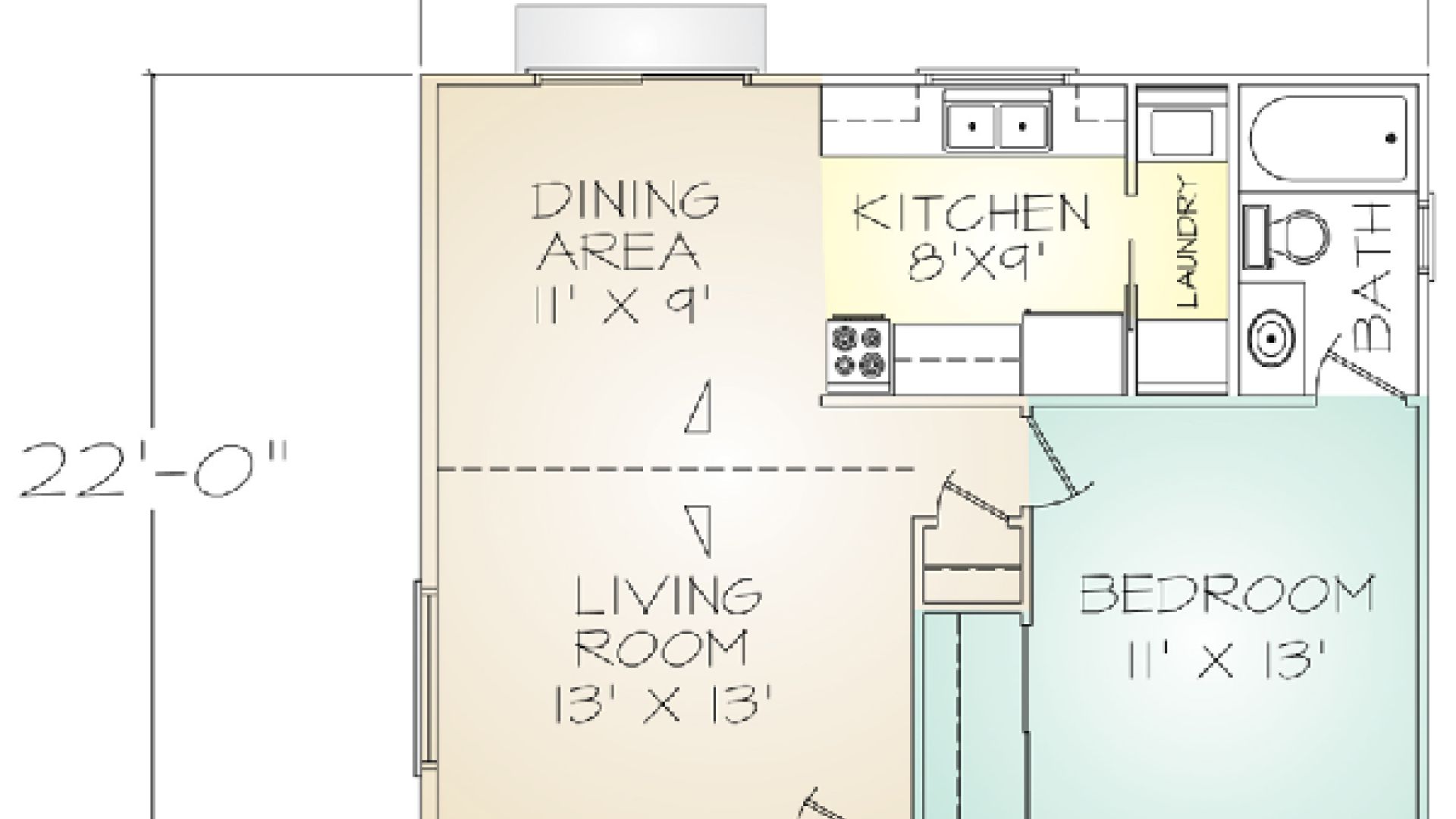 The Meadow View panelized kit home was designed to be a basic, yet comfortable, cabin or detached in-law unit. The vaulted living and dining rooms provide a feeling of far more space than the floor plan might otherwise suggest. This efficient plan even includes space for a clothes washer and dryer.